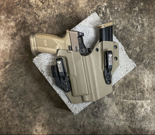 With hole spacing at 1 1/1 on center. These super strong injection molded are made in America and will help secure your OWB Holster. Available in 1.5 and 1.75 inch. Flat loops are interchangeable with the speed clip attachments.